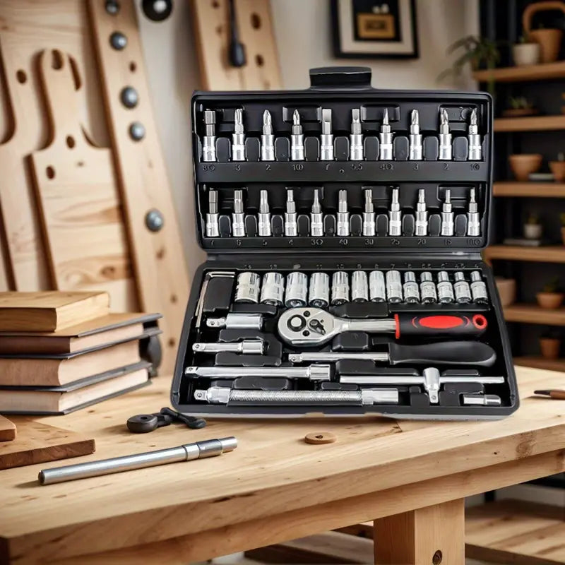 - ✅ Set completo da 46 pezzi – include bussole, prolunghe, snodi e inserti per ogni esigenza